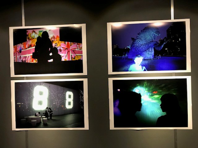 巨大なリボンのプレゼントBOXにみえるイルミネーション作品。同じくゴジラか?のようなつくりもの。いずれも光としては激しく、強く輝いでいますが、そこにいる家族、子どもを温かくしてはいない、冷たい東京の光です。