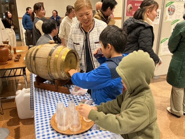 協力隊の活動がロビーに展示されてます。ブドウ栽培の協力隊は、剪定枝も飾ってあります。ホールでは、待ち時間に7人の活動をCMのように美しい動画で繰りかえされていました。