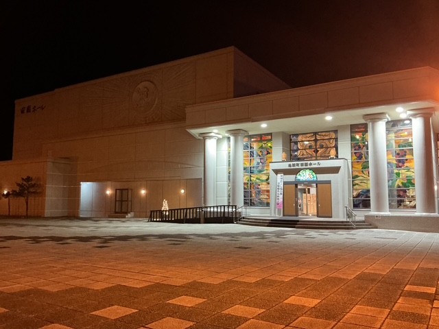 地面がもはや凍ってツルツル滑る時期、そんな夜に町の名物施設「田園ホール」に出掛けました。地方のホールとしてはずいぶん早くにできた、ステンドグラスの輝く立派なホールです。日本初、自治体ワインを成功させた町の恩恵でしょう。